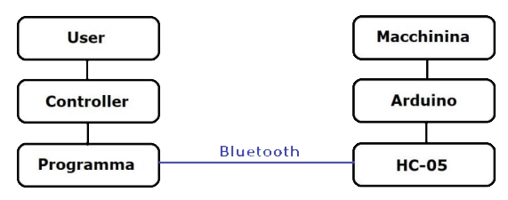 Per il controllo della macchinina da remoto, abbiamo pensato ad un controller molto semplice, sia con GUI, che con acquisizione di tasti; il tutto doveva semplicemente fare da tramite tra User e macchinina.